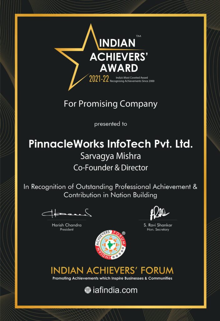 Awarded as the most promising company in recognition of Outstanding Professional Achievement and contribution in Nation Building