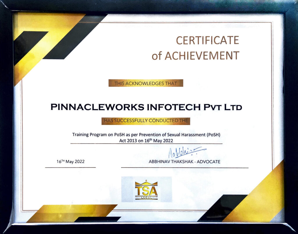 Award for Training on PoSH Per prevention of Sexual Harassment
